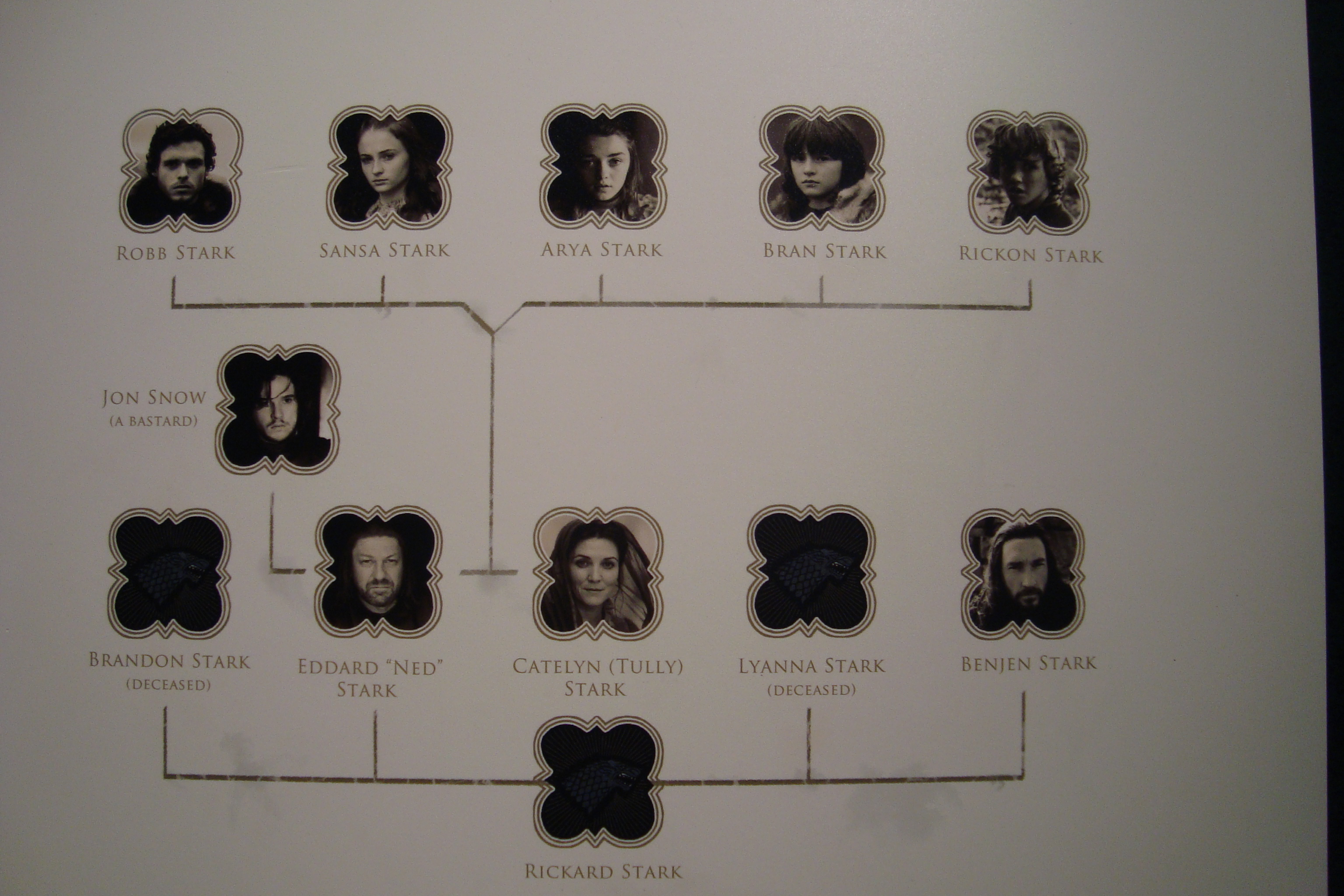 A primeira coisa que vimos foi a história de Westeros, incluindo o mapa original e localização de cada um dos 7 reinos. Seguido pela apresentação da casa Stark, representada pelo lobo, com os figurinos originais dos personagens, a história da casa, vídeos dos atores e a árvore genealógica da família.