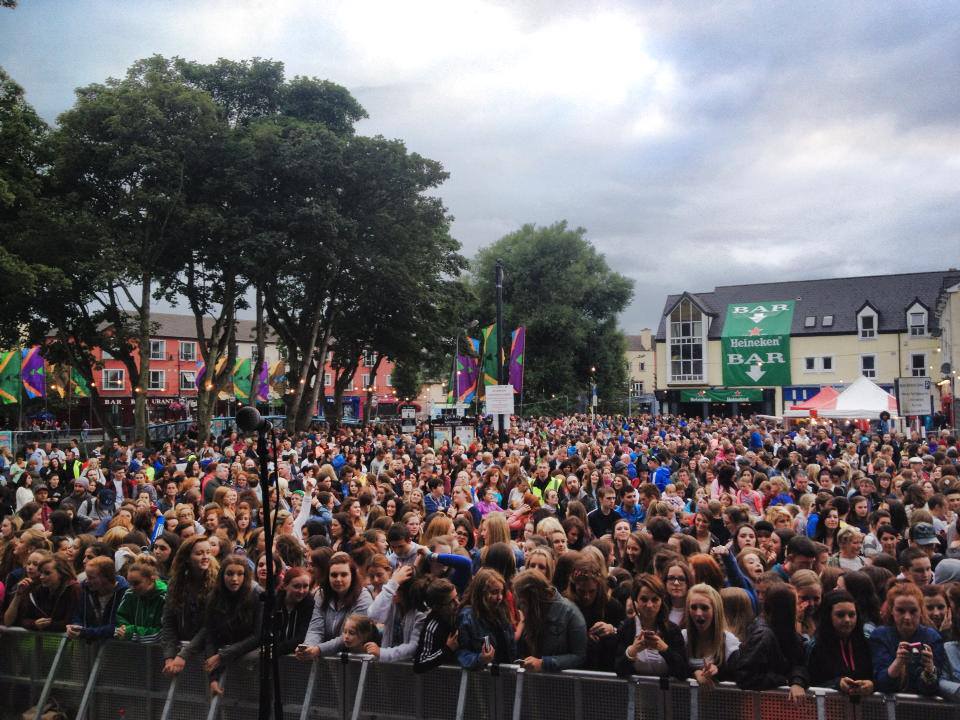 Já havia combinado com o Liam de me juntar aos amigos dele pra curtir o evento e assim o fiz. Nos encontramos umas 20h na sexta-feira e fomos direto pro palco principal. Estava LOTADO! Eu nunca havia visto tanta gente em Sligo. Eu não conhecia as bandas que estavam tocando, mas eram muito boas.