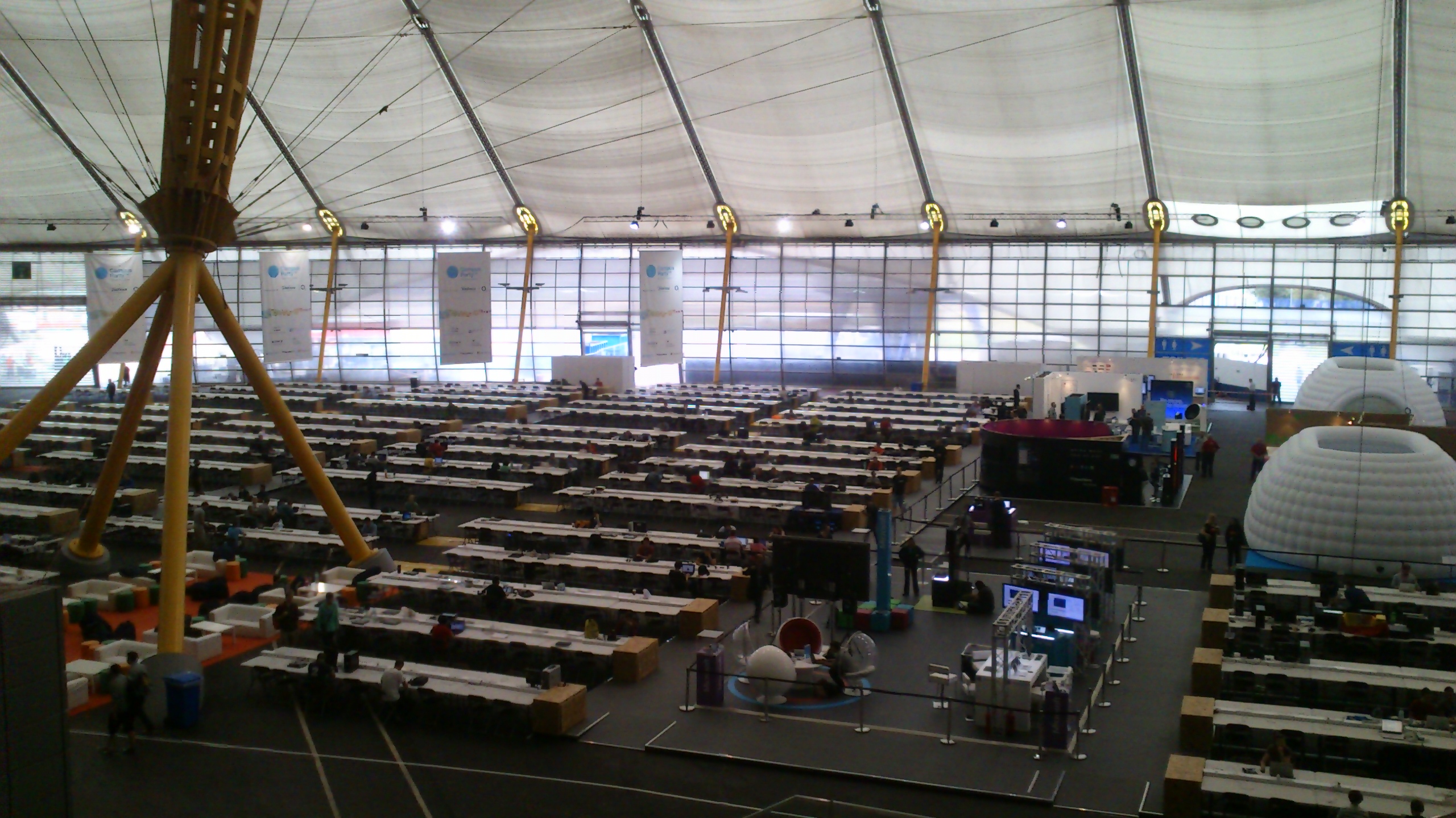 O primeiro dia do evento foi só check-in dos campuseros e não tinha nada rolando nos stands. Como estávamos muito cansados, apenas ficamos na internet (mega velocidade) na arena principal, comemos e dormimos cedo. Nem vimos a cerimônia de abertura que rolou na área dos stands.