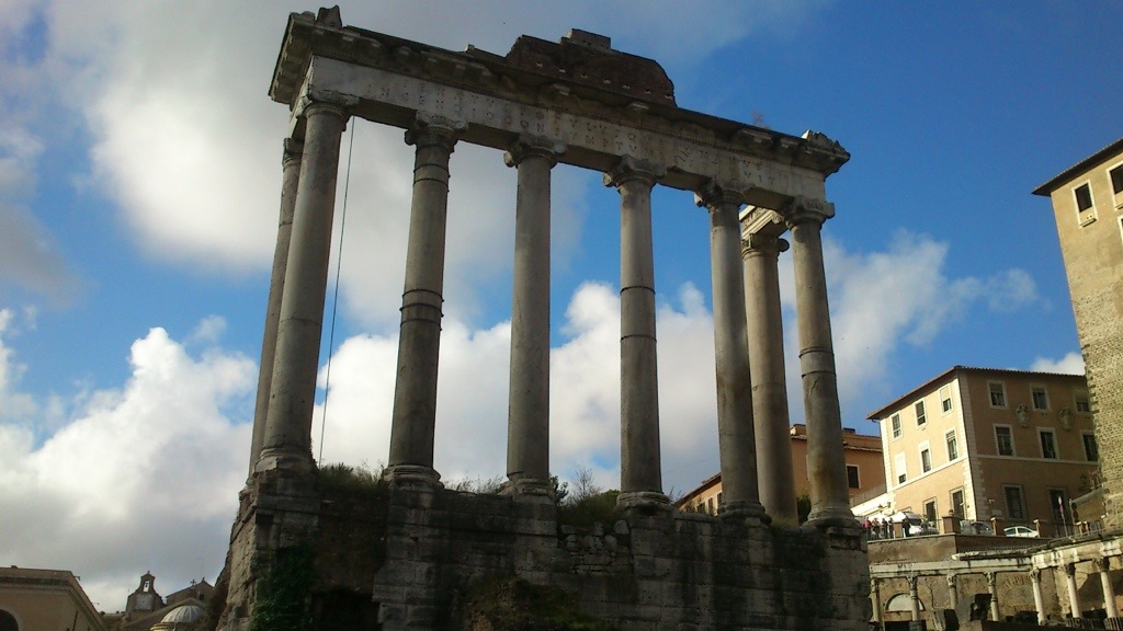 Os templos estão bem em ruínas mesmo, mas não deixam de ser magníficos. O templo de Saturno fica bem no fundo e ainda preserva umas 3 colunas originais, de mais de 2 mil anos e algumas inscrições nas pedras. Já o templo de Rômulo é um dos mais preservados e também, um dos mais adorados, porque afinal foi ele quem fundou Roma!