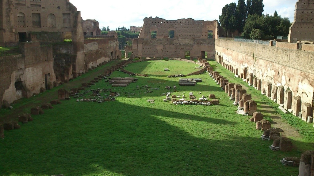 Dentro da área do Foro Romano fica o Palatino, que é uma grande área verde, uma espécie de bosque, onde ficava o Palácio Imperial, que infelizmente está em ruínas e a Arena Palatino, que ainda está lá.