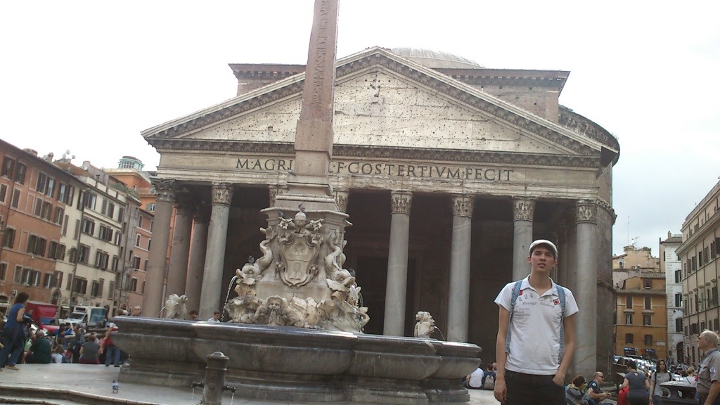 Quando chegamos ao Panteão eu quase não acreditei. Se você não sabe, o Panteão é o único templo dos deuses antigos que ainda está de pé em Roma. A religião romana antes do cristianismo era politeísta, ou seja, eles tinham vários deuses e o Panteão era o único templo onde qualquer deus poderia ser adorado.
