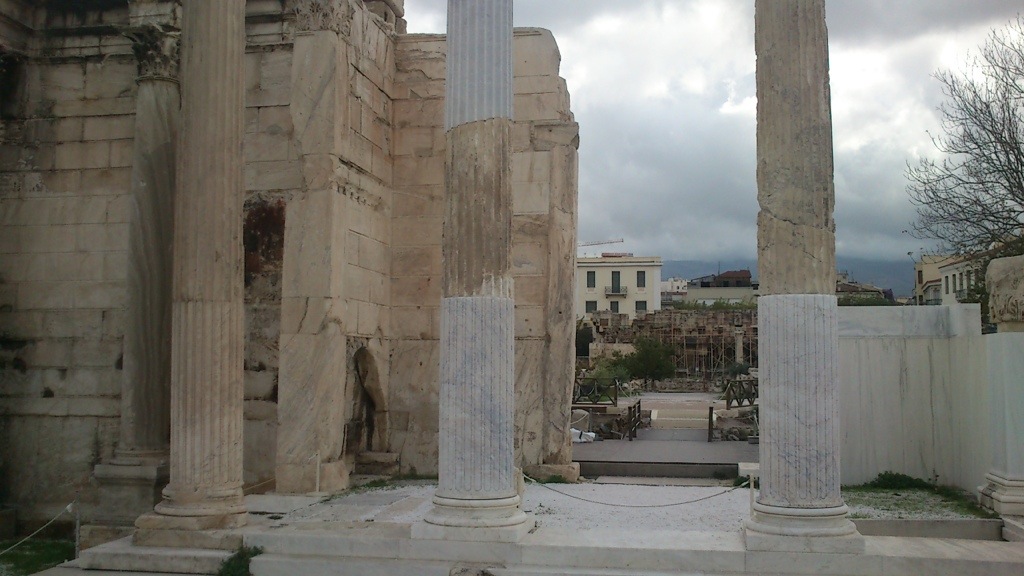 Nosso primeiro contato foi com a Biblioteca de Adriano que fica bem na entrada e ali já pude me impressionar. A biblioteca foi fundada pelo Imperador Romano Adriano em 132 ac e ainda preserva 3 colunas originas e algumas inscrições.