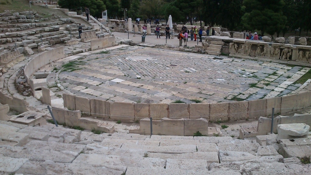 Começamos pelo Teatro de Dionísio que é simplesmente lindo e impressionante. As arquibancadas preservam as inscrições em grego de mais de 2,5 mil atrás, a arquitetura é fascinante e é impossível não pensar em quão lindo deveria ser vê-lo cheio de gente.