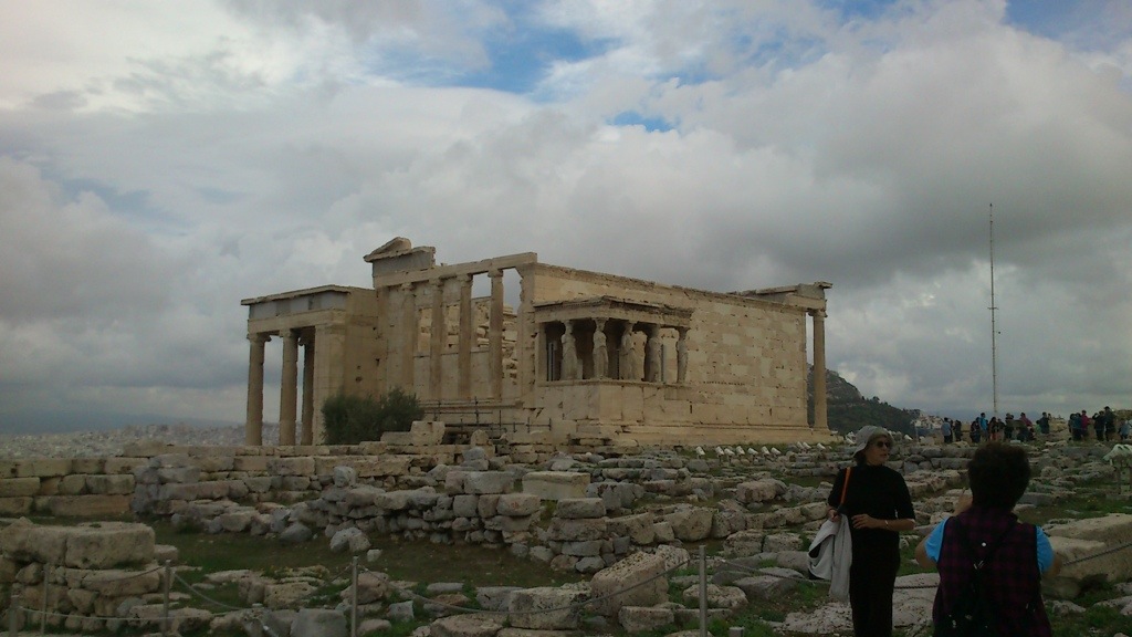 Em volta da oliveira, que ainda está lá (fake) foi construído o templo de Erechteion, que era usado para a adoração de vários deuses, inclusive Pôseidon. Ele tem uma espécie de “cicatriz” em uma das colunas e diz a lenda que o próprio Pôseidon a fez em um momento nervosinho.