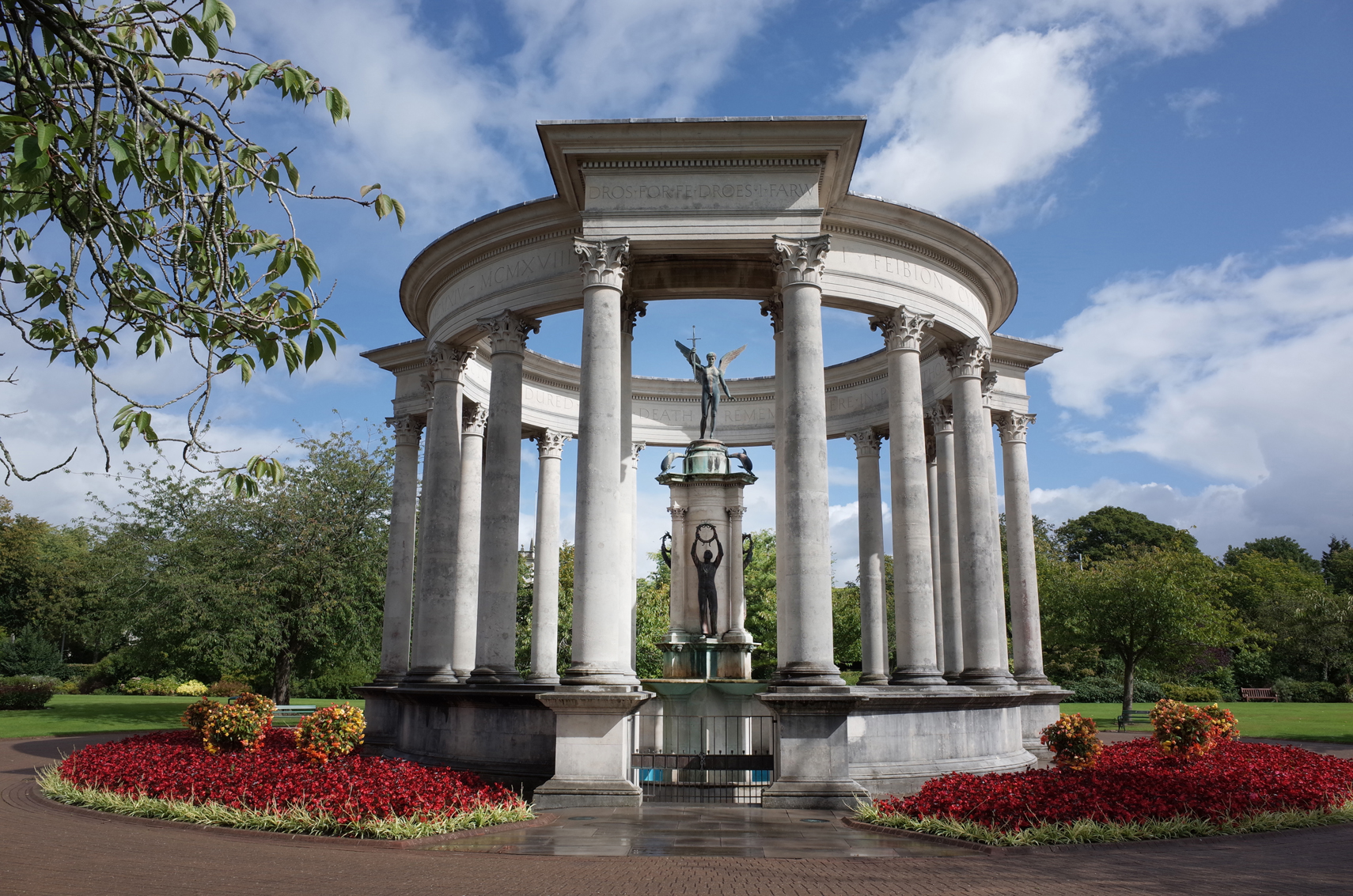 Cathays Park e’ um dos maiores parques de Cardiff e fica numa das areas mais estudantis da cidade. E’ um parque bem florido e com alguns monumentos, como esse da foto, que representa os galeses que morreram em batalha.