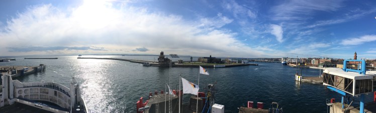 De lá seguimos até a cidade de Helsingborg, onde pegamos o barco pra voltar a Dinamarca. De Helsingborg dá pra ver perfeitamente a costa da Dinamarca, em Helsingor.