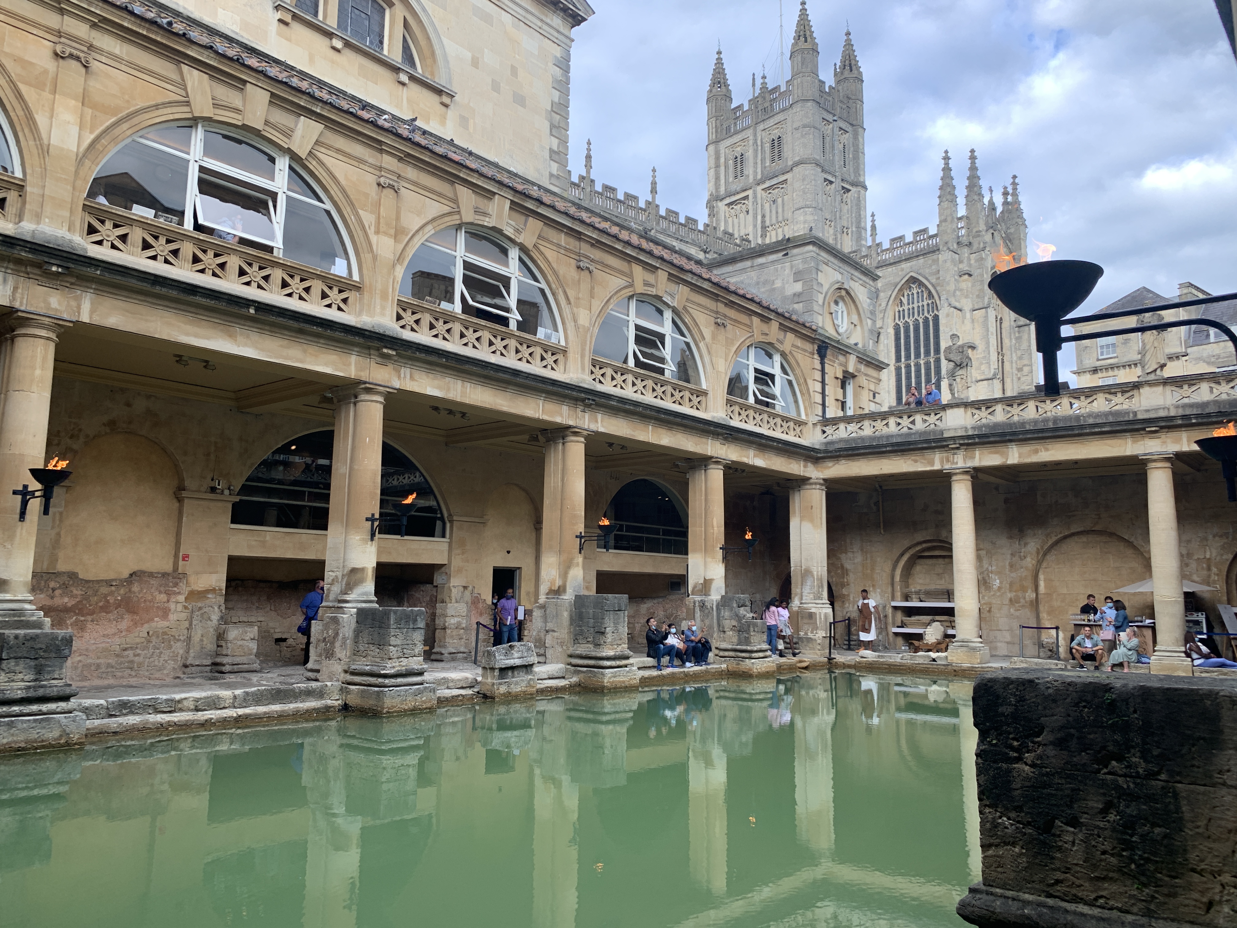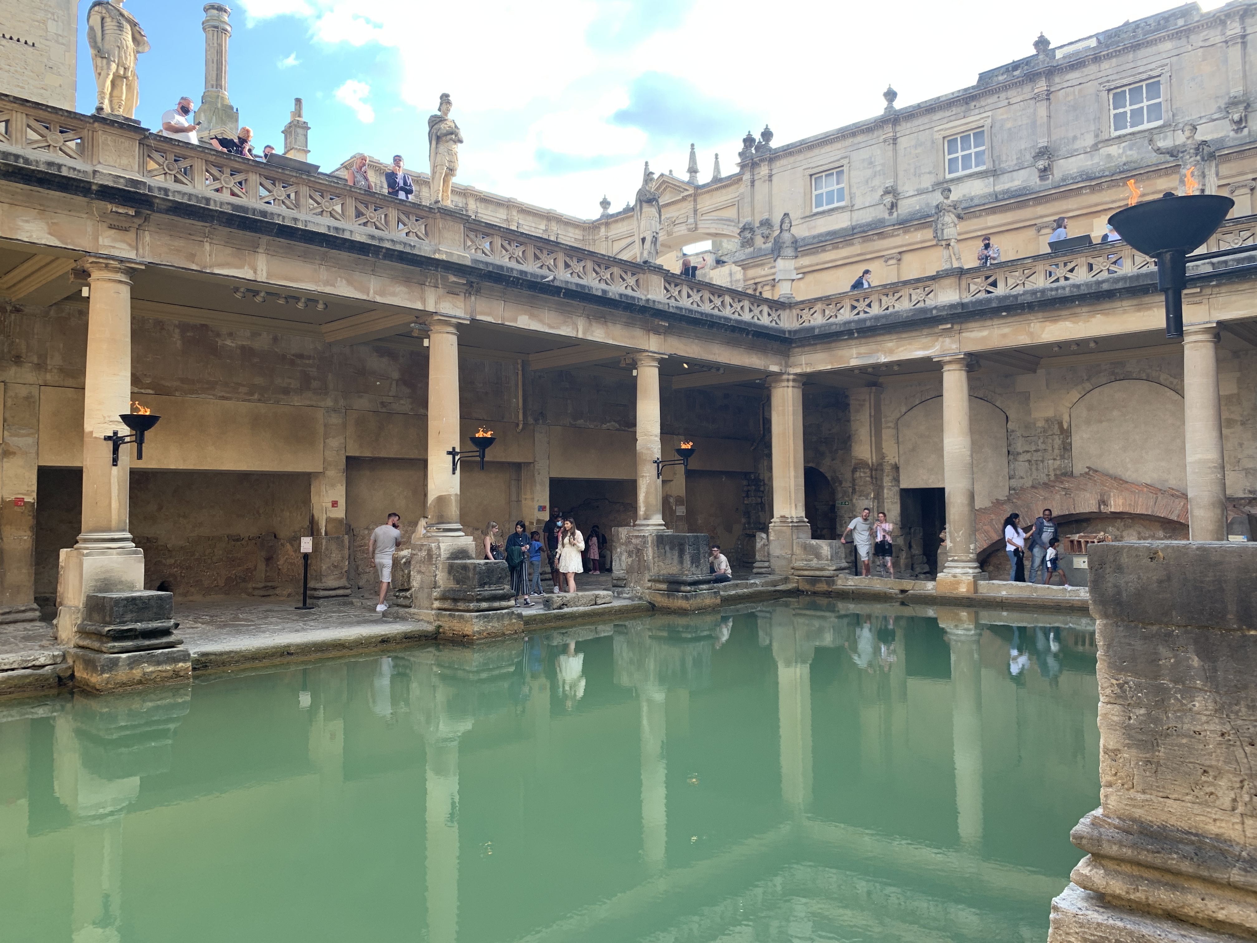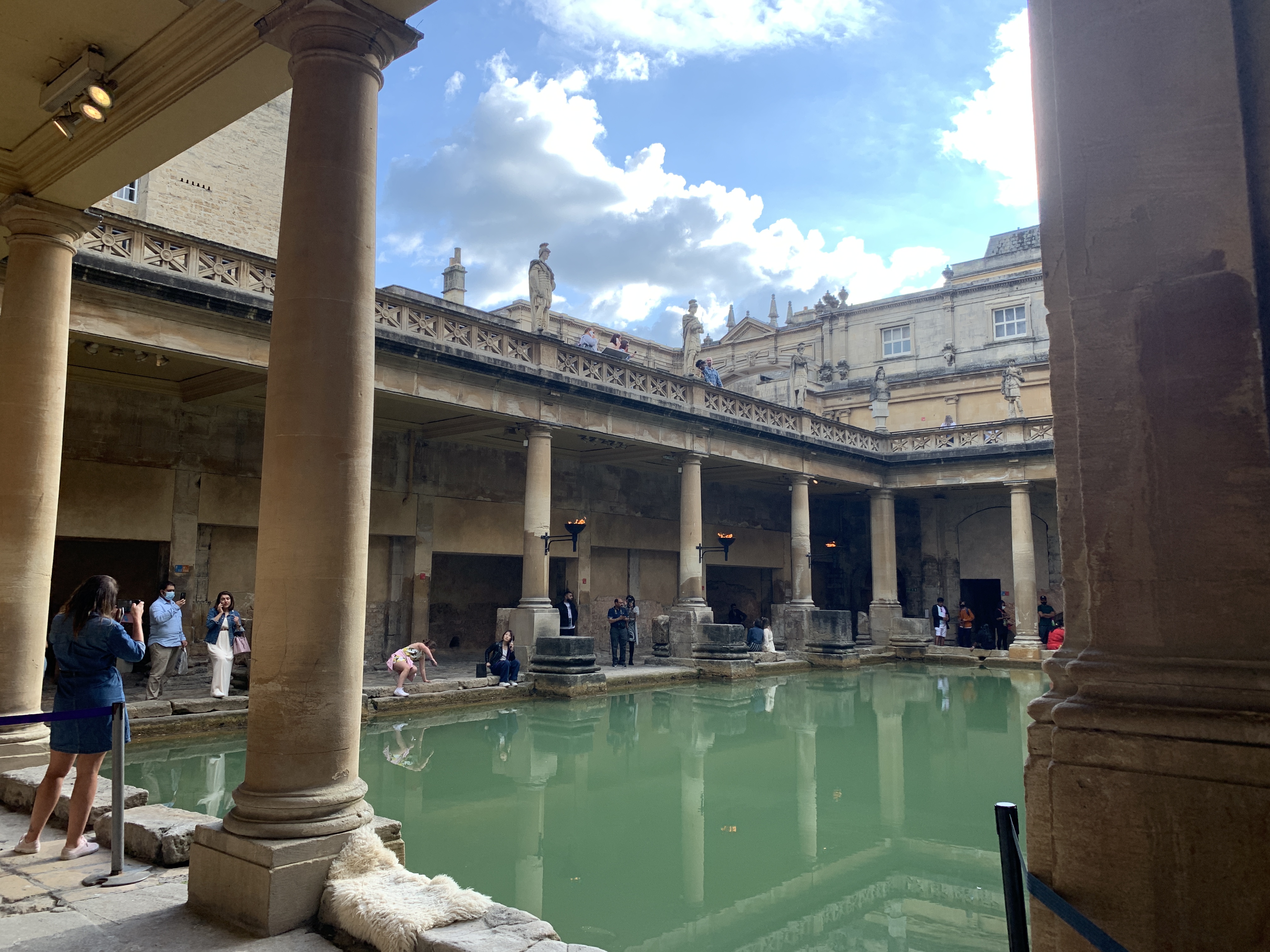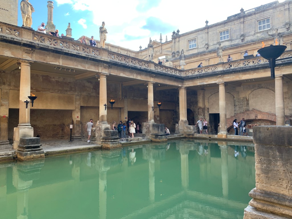 Em tempos romanos, Bath, ou Aquae Sulis como os romanos a chamavam, era uma cidade super importante pro Império Romano na Inglaterra e era muito famosa por suas termas. A cidade foi construída ao redor de algumas fontes de águas termais e a os romanos construíram um spa ao redor da maior delas, que está lá até hoje!