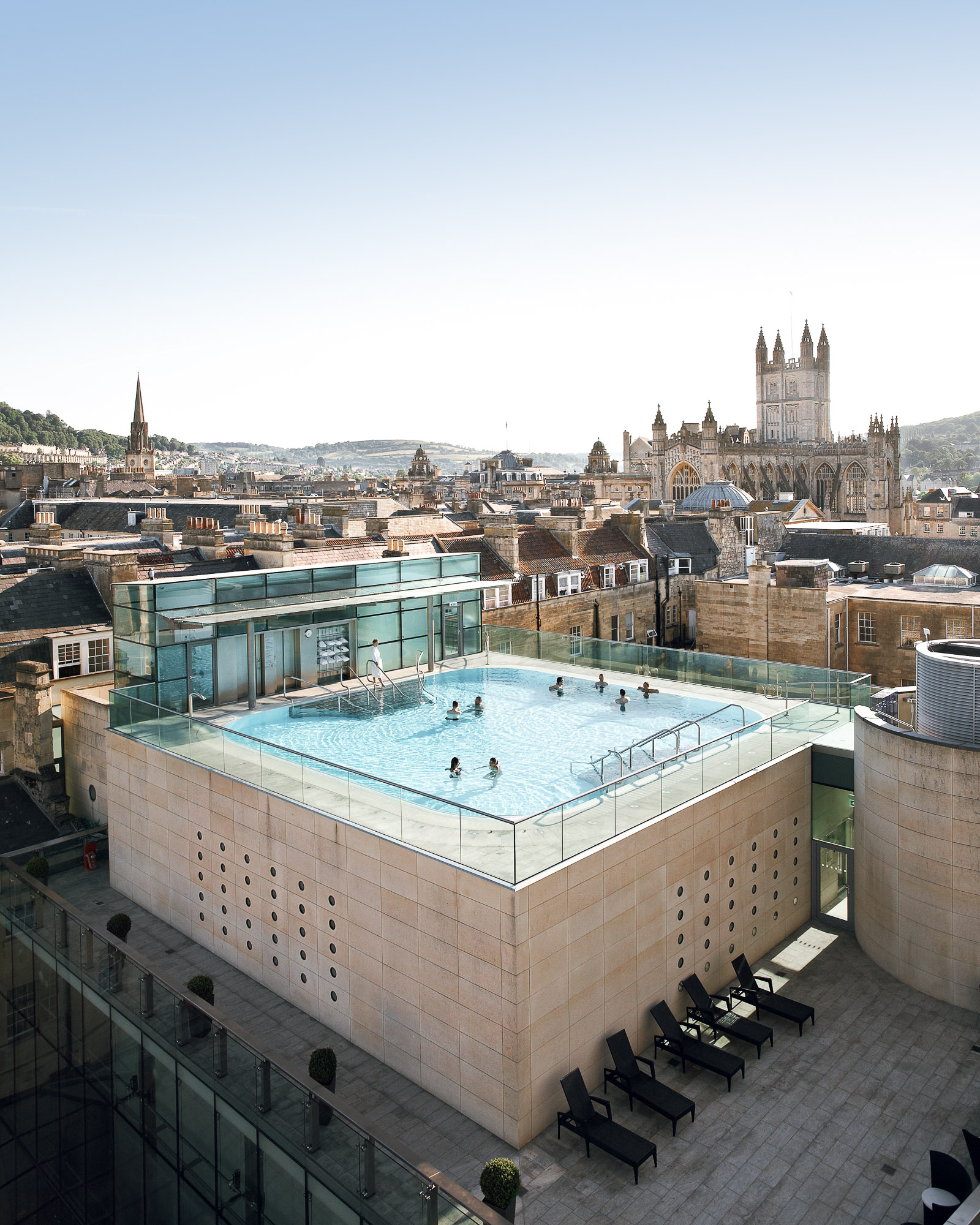 Ficamos por la por cerca de 1h e terminamos o dia no Thermae Spa, um spa no centro de Bath que também usa a fonte de água térmica. Por motivos de privacidade, não pode tirar foto dentro, mas tirei essa do Google pra vocês terem uma ideia.