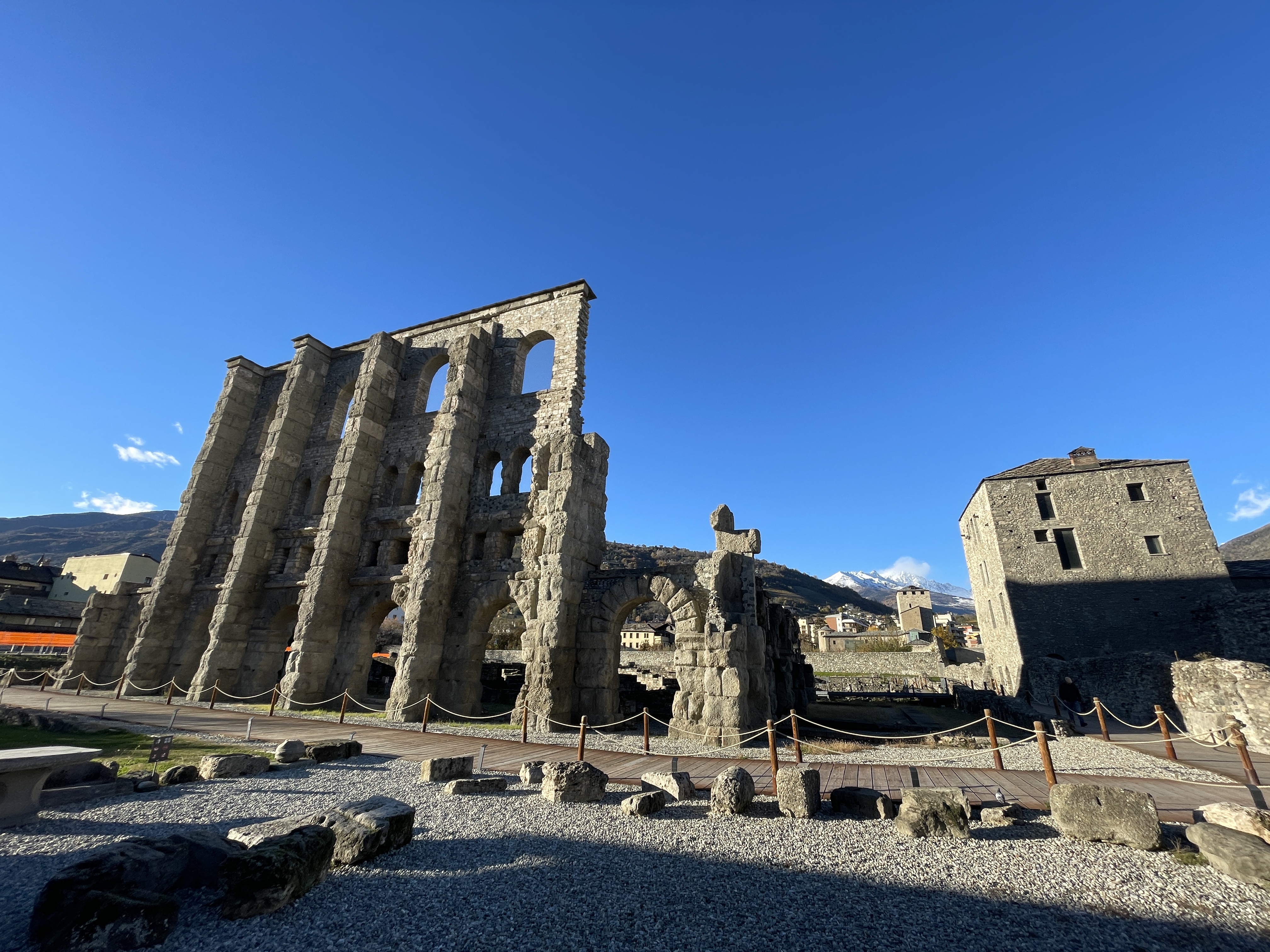 Aosta, assim como muitas cidades italianas, já foi uma colônia romana e ainda preserva muitos coisas dos tempos romanos, como o incrível Foro Romano e as Ruínas da Cidade.