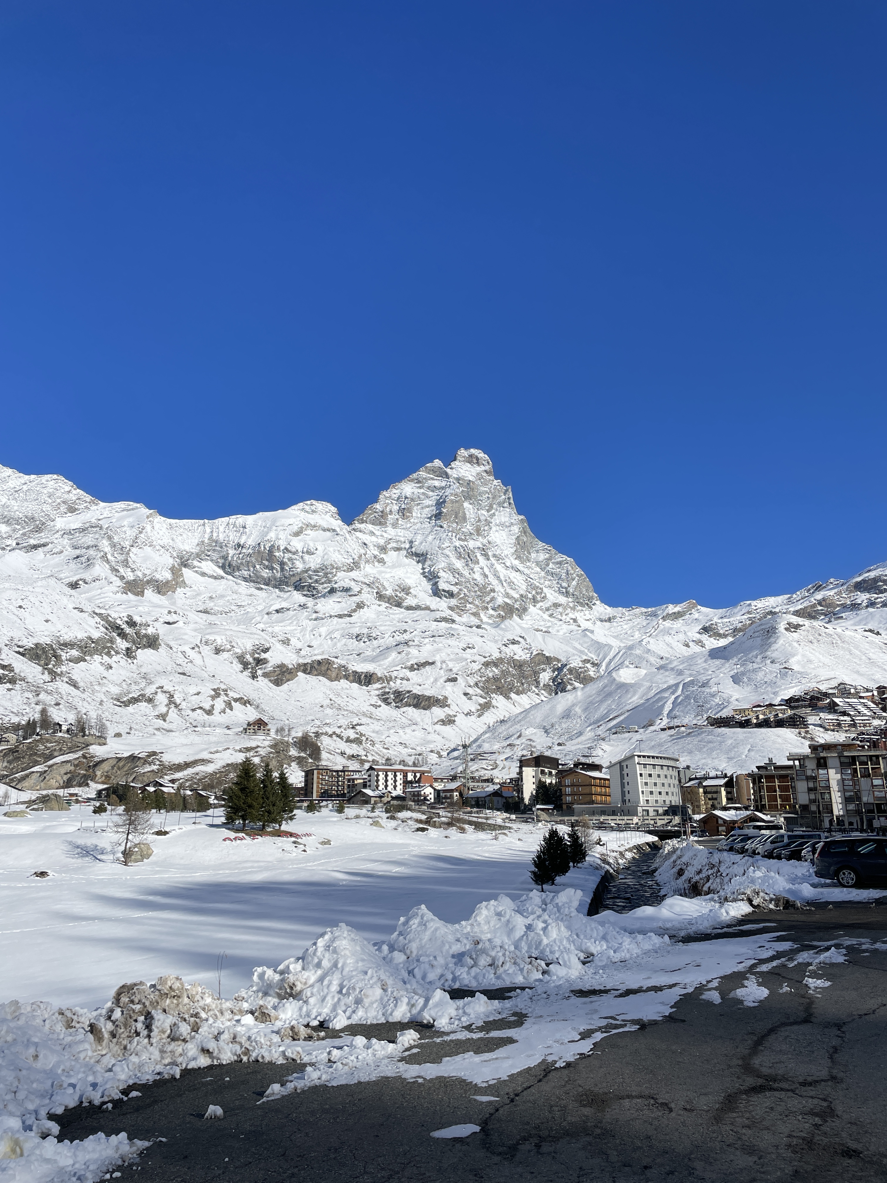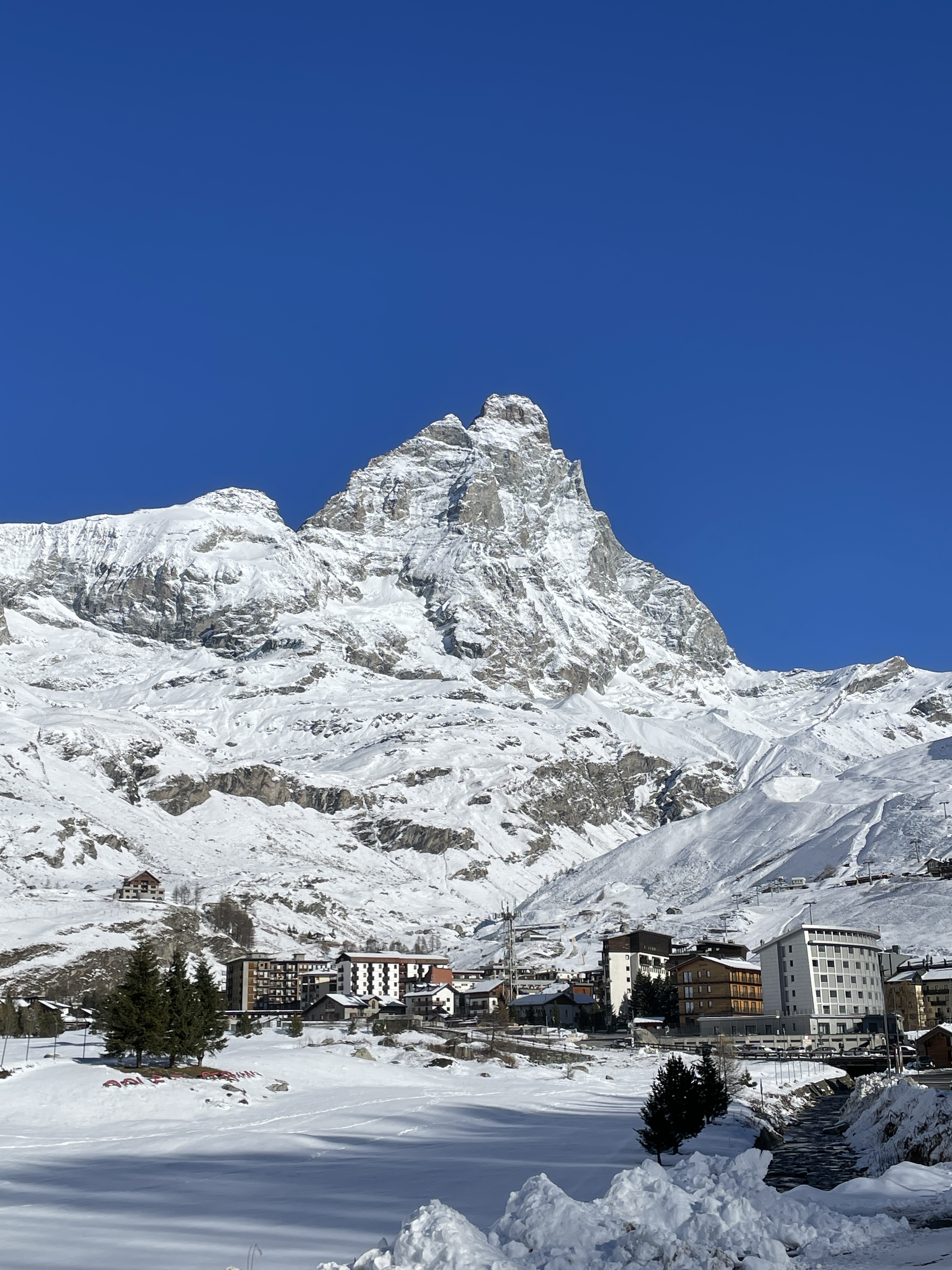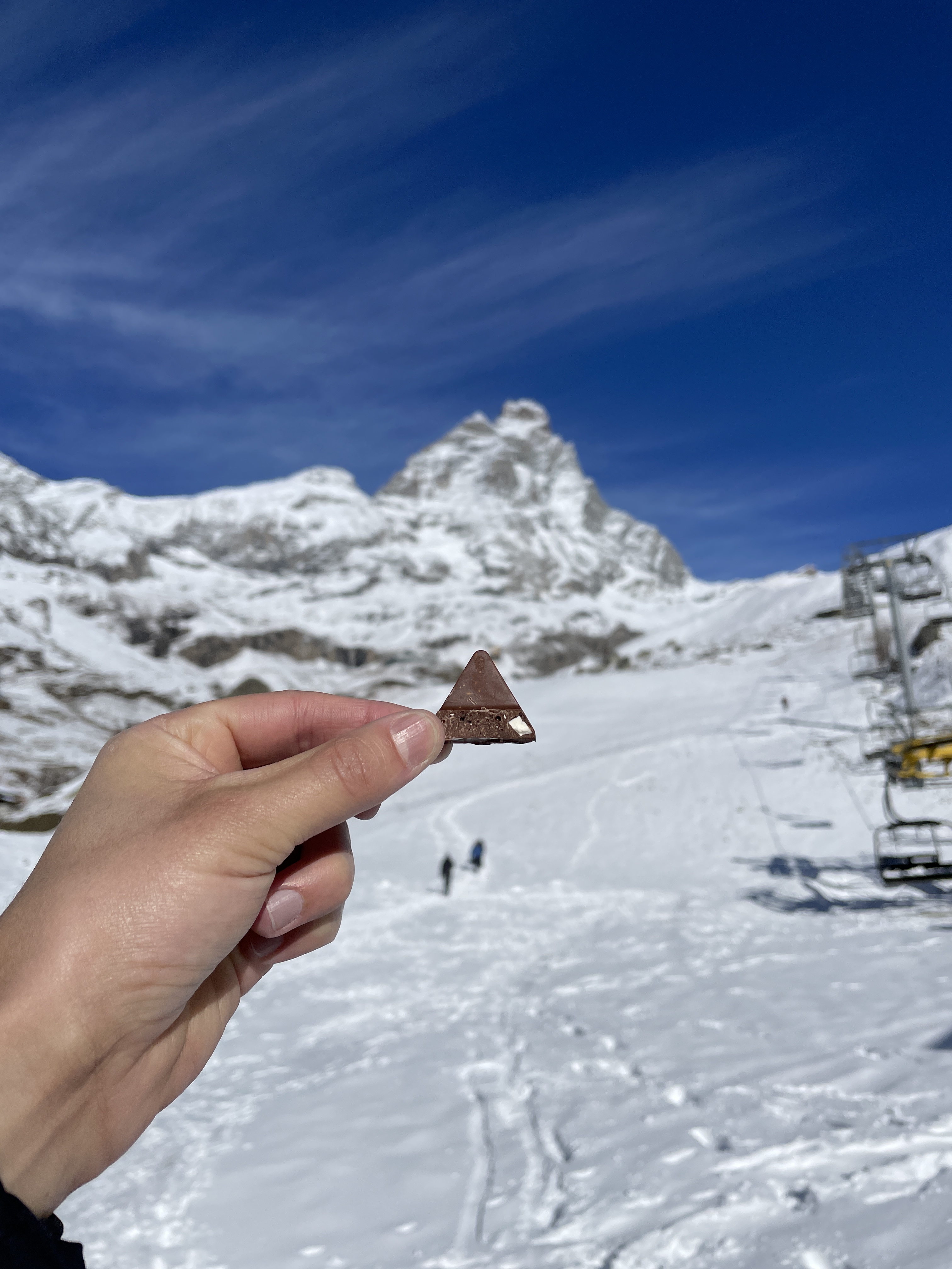 A missão por lá era subir as montanhas até a cidade de Cervinia, que fica no pé do Monte Cervino – que é o monte que vemos na embalagem do chocolate Tobleronne!