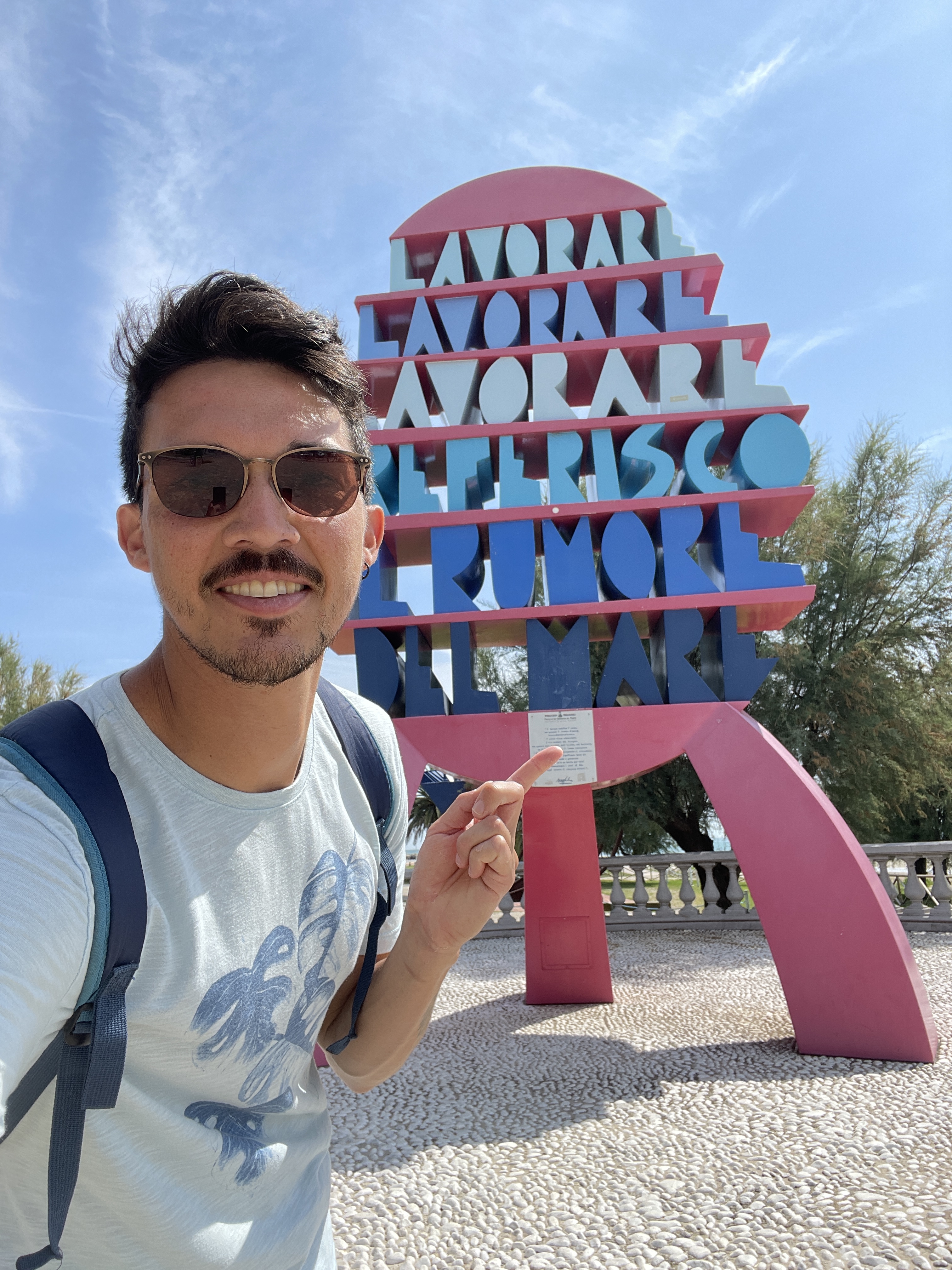 Passei o dia por lá lagarteando na praia, comendo bem e passei uma hora e pouco visitando o MAM – Museo d’Arte sul Mare (Museu de Arte no Mar), que é literalmente um museu ao céu aberto, de frente pro mar! Super interessante e com uma coleção de obras bem lindas!