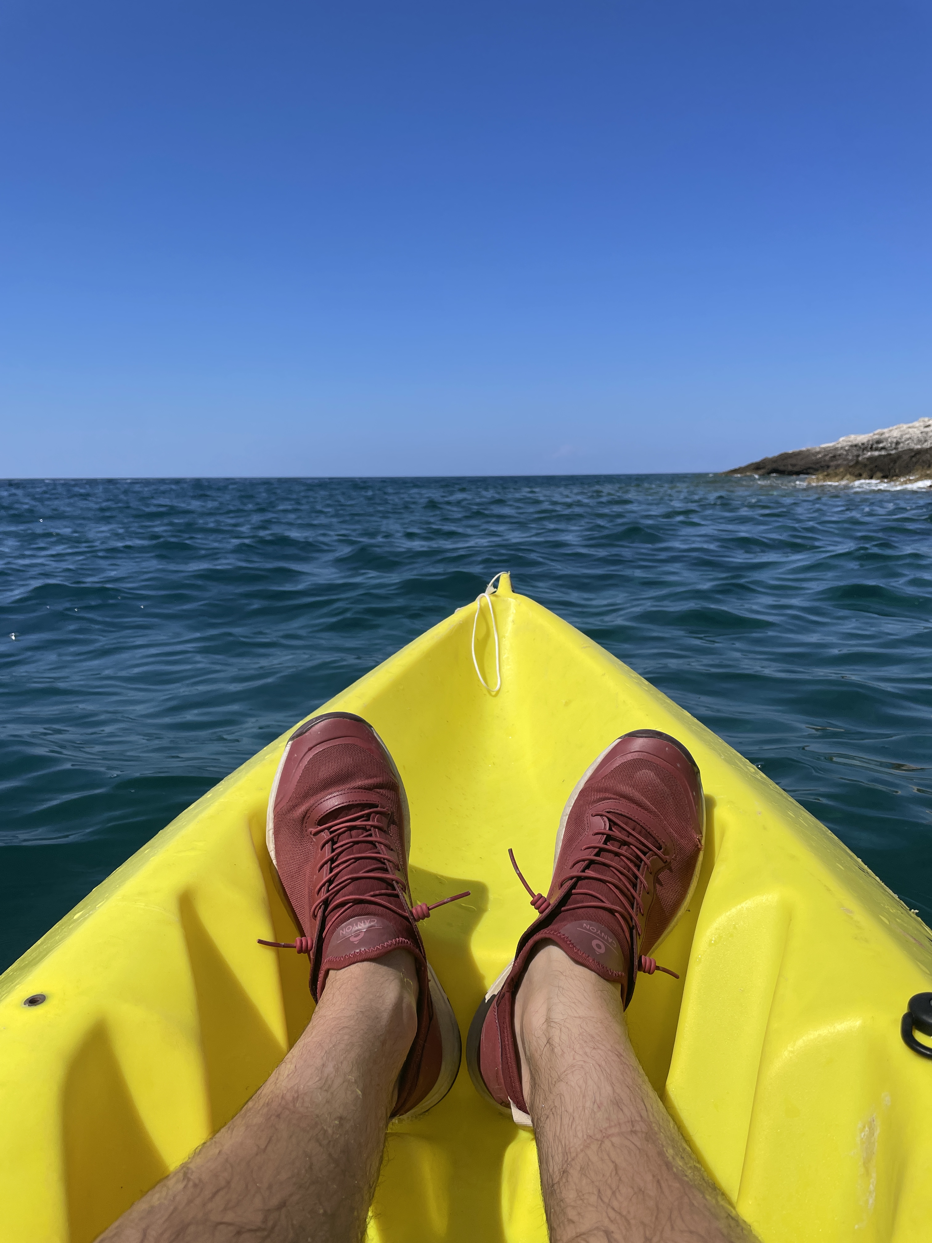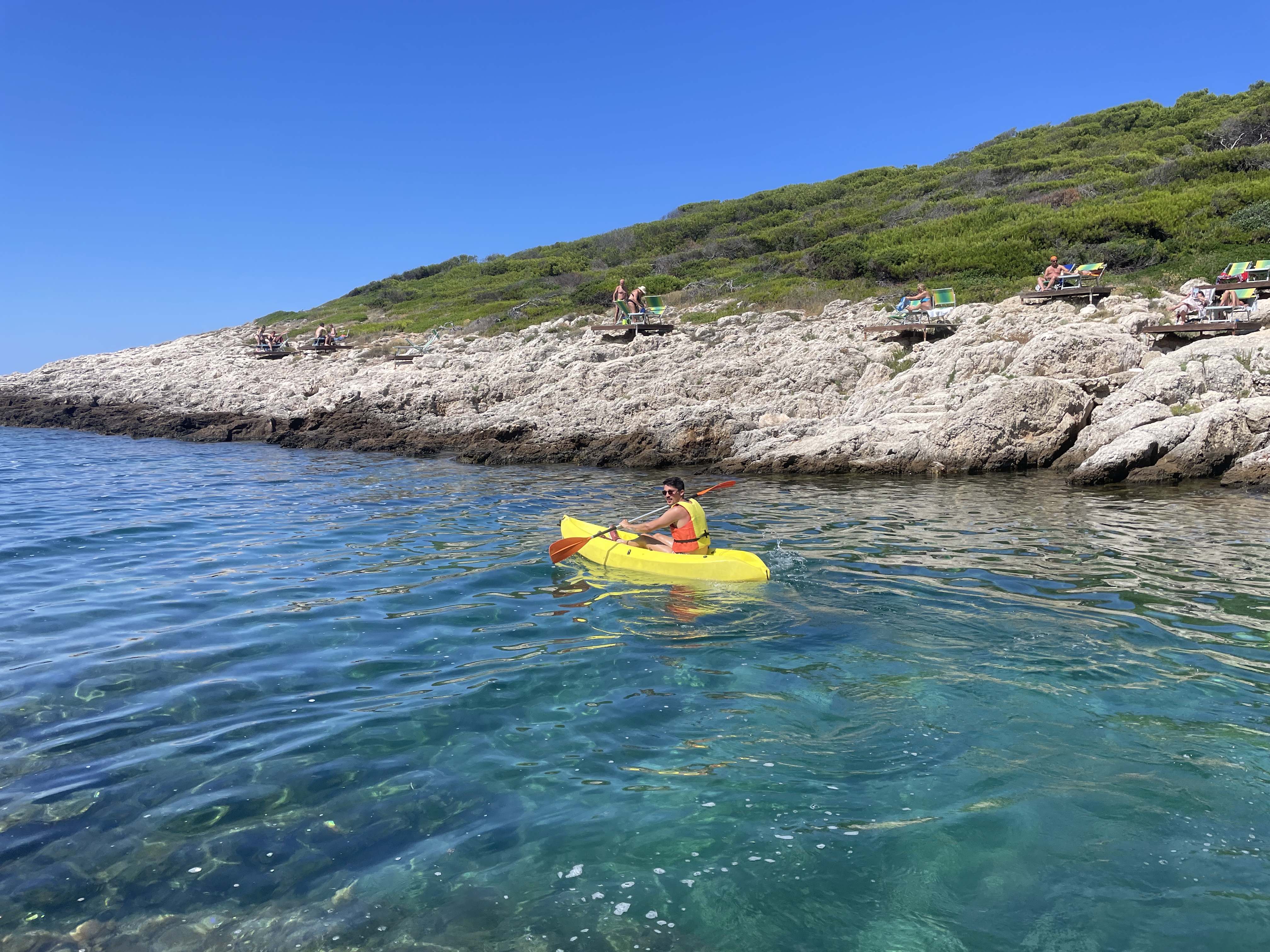 Entre uma cala e outra, encontrei uma barraquinha alugando kayak e aluguei um por 1h, que foi uma experiência muito legal.