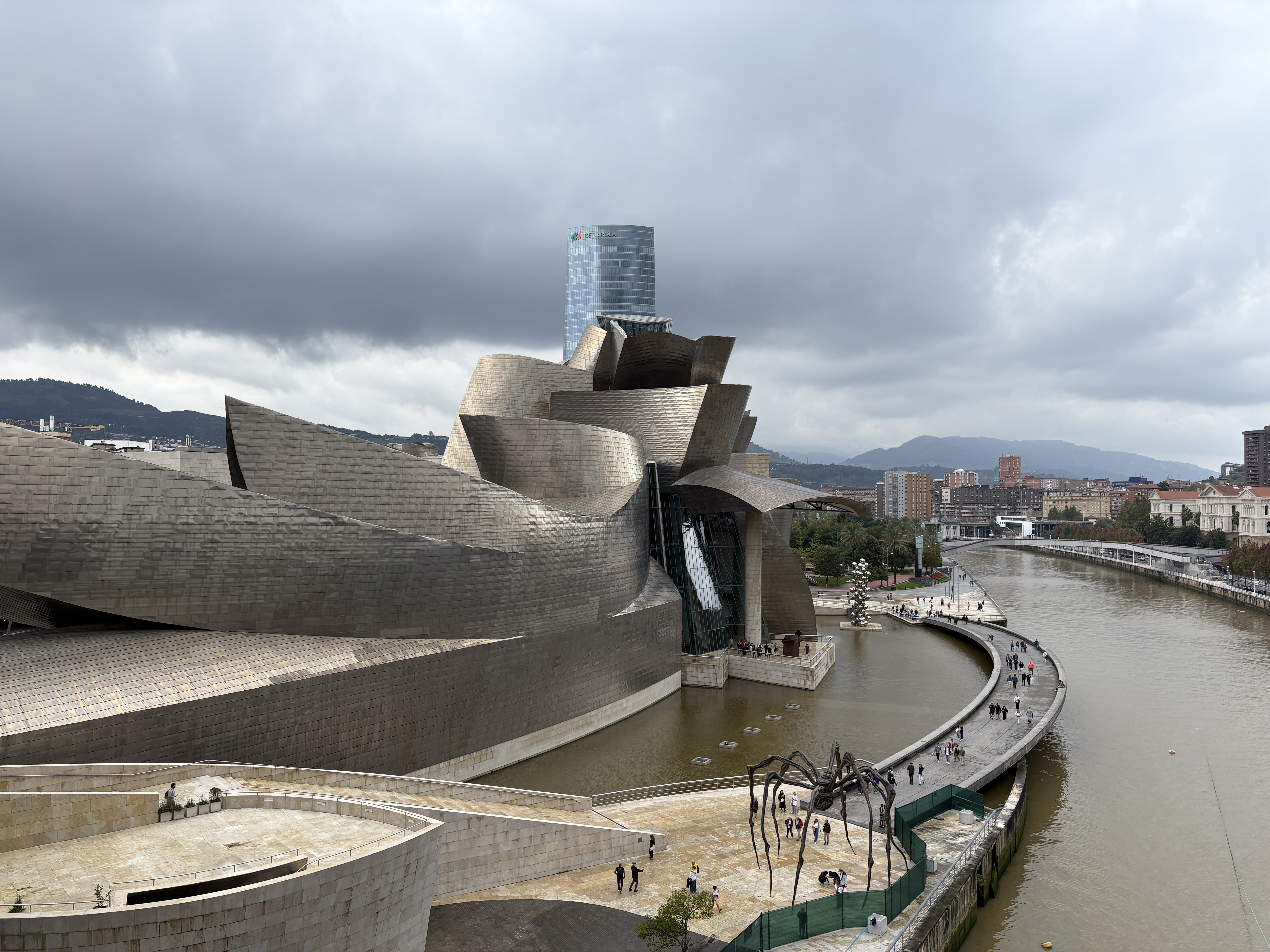Foi uma viagem bem tranquila, andamos muito pelas vielas antigas de Bilbao e também visitamos o ponto turístico mais famoso da cidade, o Museu Guggenheim, que apelidamos de Guggs, e suas estátuas gigantes de aranha e cachorrinho.