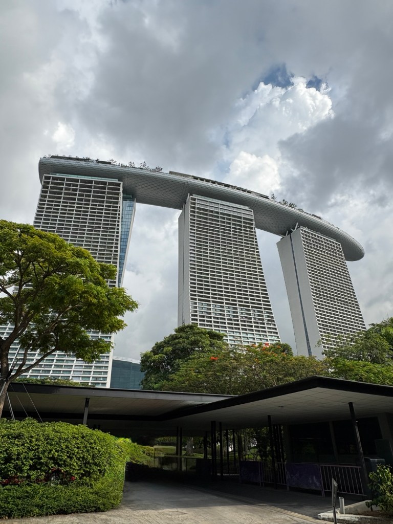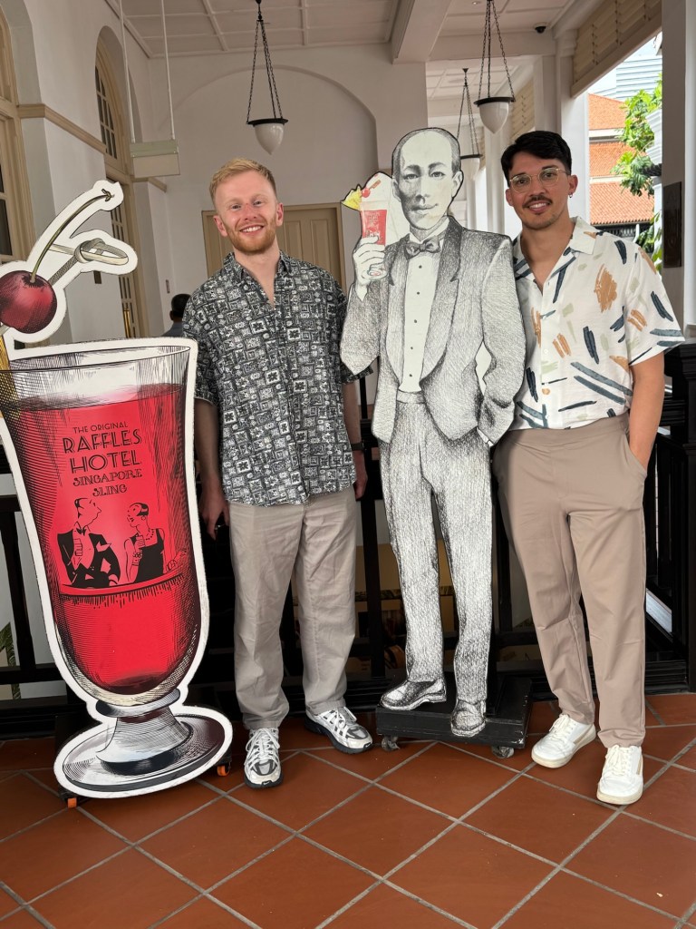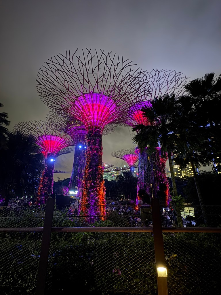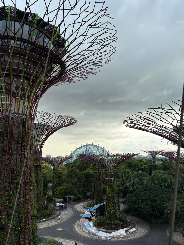 Depois fomos ao Gardens By The Bay para ver as enormes árvores iluminadas e caminhar pelas pontes suspensas. De alguma forma, ainda tivemos energia para fazer umas comprinhas na Uniqlo e na Apple antes de bater o cansaço e precisarmos tirar um cochilo no hotel. No fim do dia, saímos novamente e fomos ao Raffles, onde provamos o famoso Singapore Sling no Long Bar do Hotel Raffles.