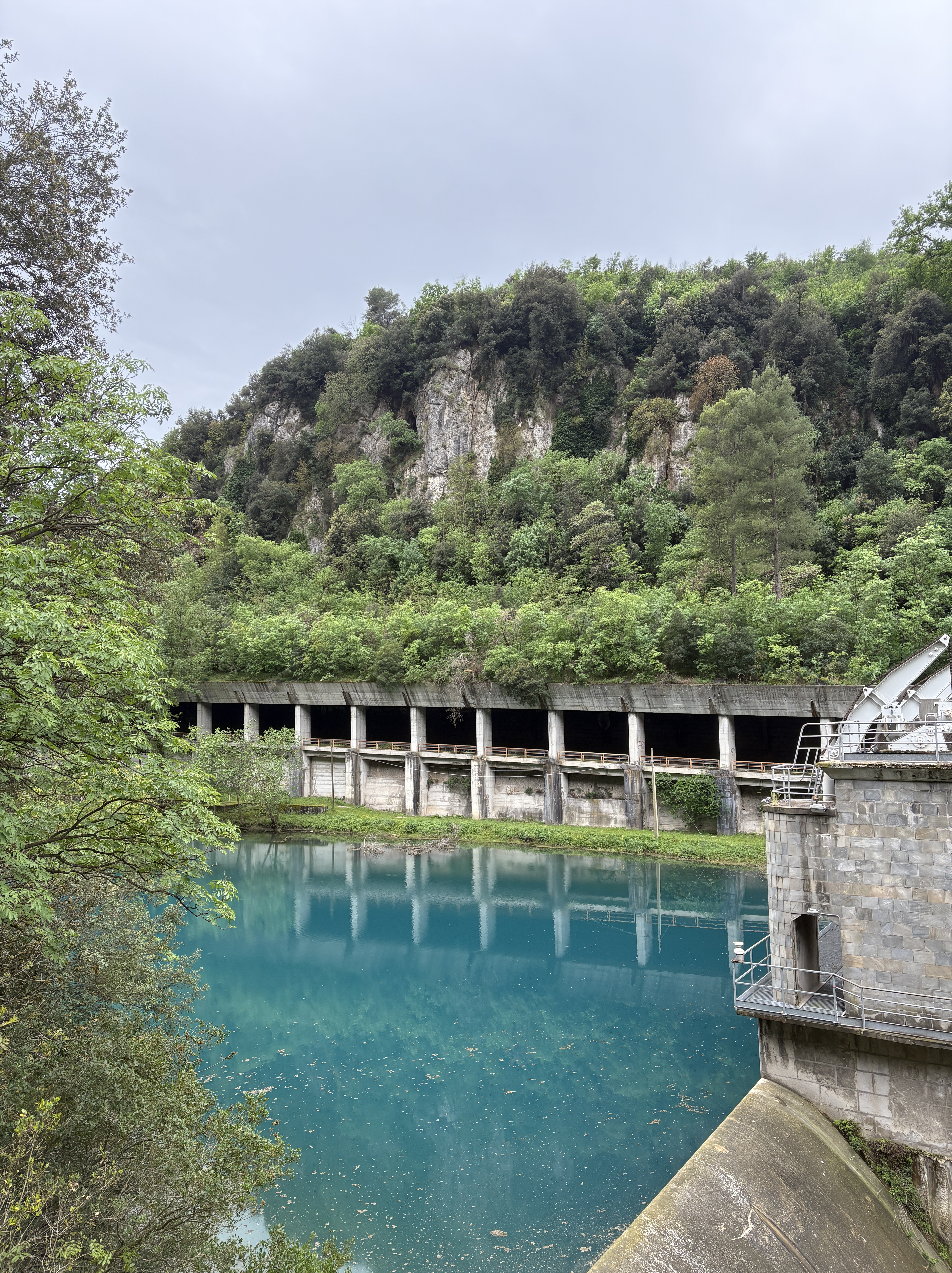 A água fica assim toda azul devida aos minerais encontrados nas rochas das montanhas da Umbría que filtram a água que corre no rio que forma os ‘Mole di Narni’.
